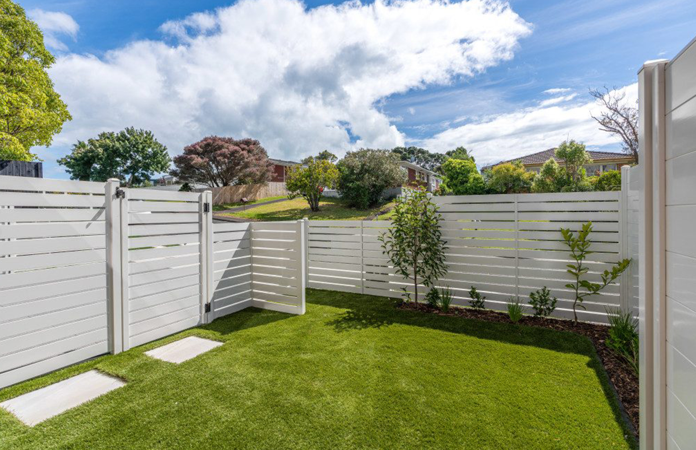· Sleek aluminum fencing enhances privacy and curb appeal
